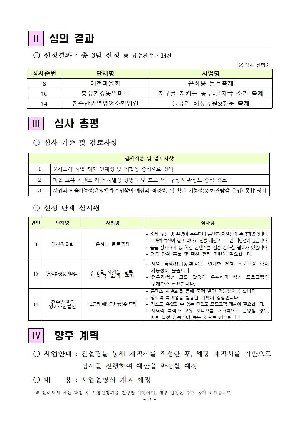 [문화도시센터] 「대한민국 문화도시」2026 마을축제 지원 및 활성화 사업 마을(단체) 선정 결과 공고 작성자 : hjculture 작성날짜 : 2026-01-27 조회수 : 371