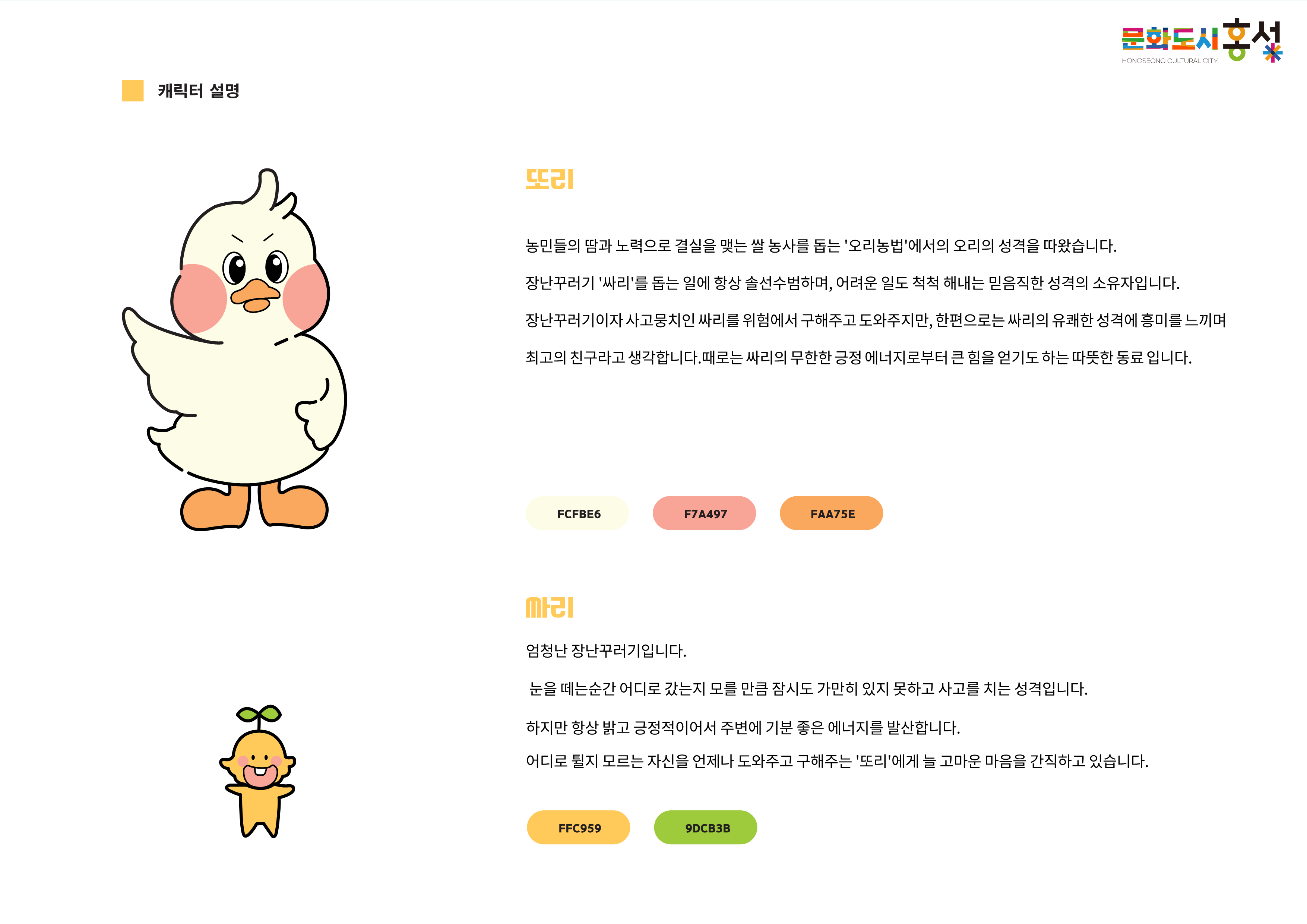 [대한민국 문화도시] 문화도시 홍성 캐릭터 '또리와 싸리', '용냥이와 뭉이', '진수와 성찬', '김&새우젓&마늘' 작성자 : hjculture 작성날짜 : 2026-01-19 조회수 : 199