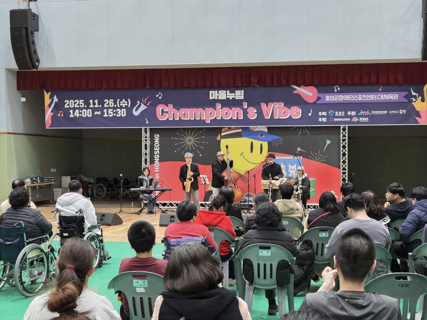 [마을누림] Champion's Vibe | 홍성군장애인체육관 14시 (11. 26.) | 셀위브라스, 연희퍼포먼스크루 '새로', 충주재즈협회, 튠에이드 | 문화도시 홍성 작성자 : 홍주문화관광재단 작성날짜 : 2025-12-05 조회수 : 149