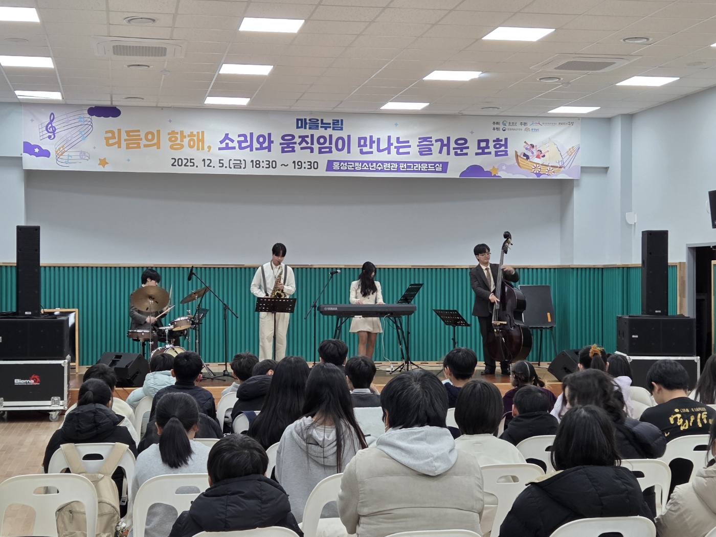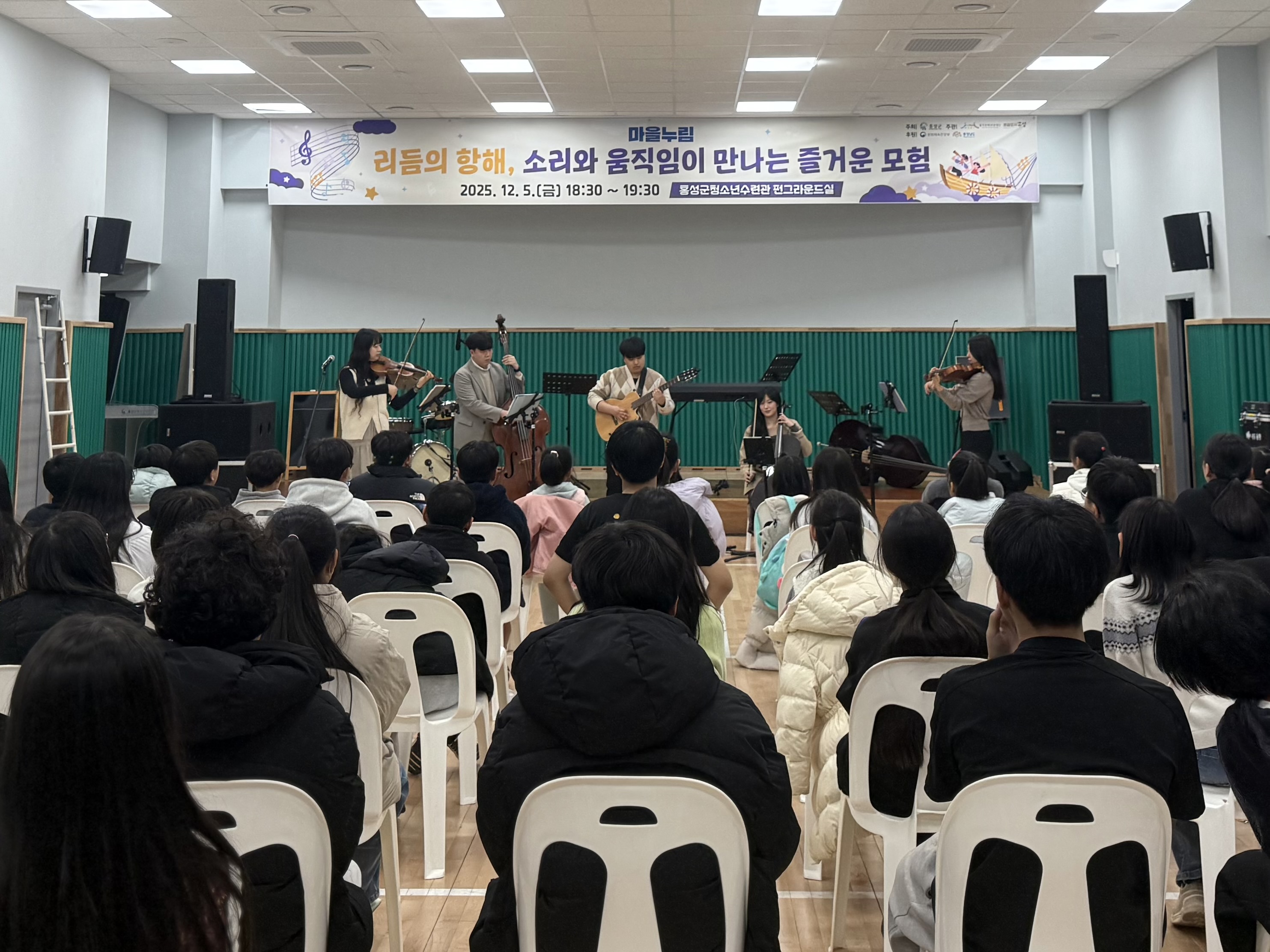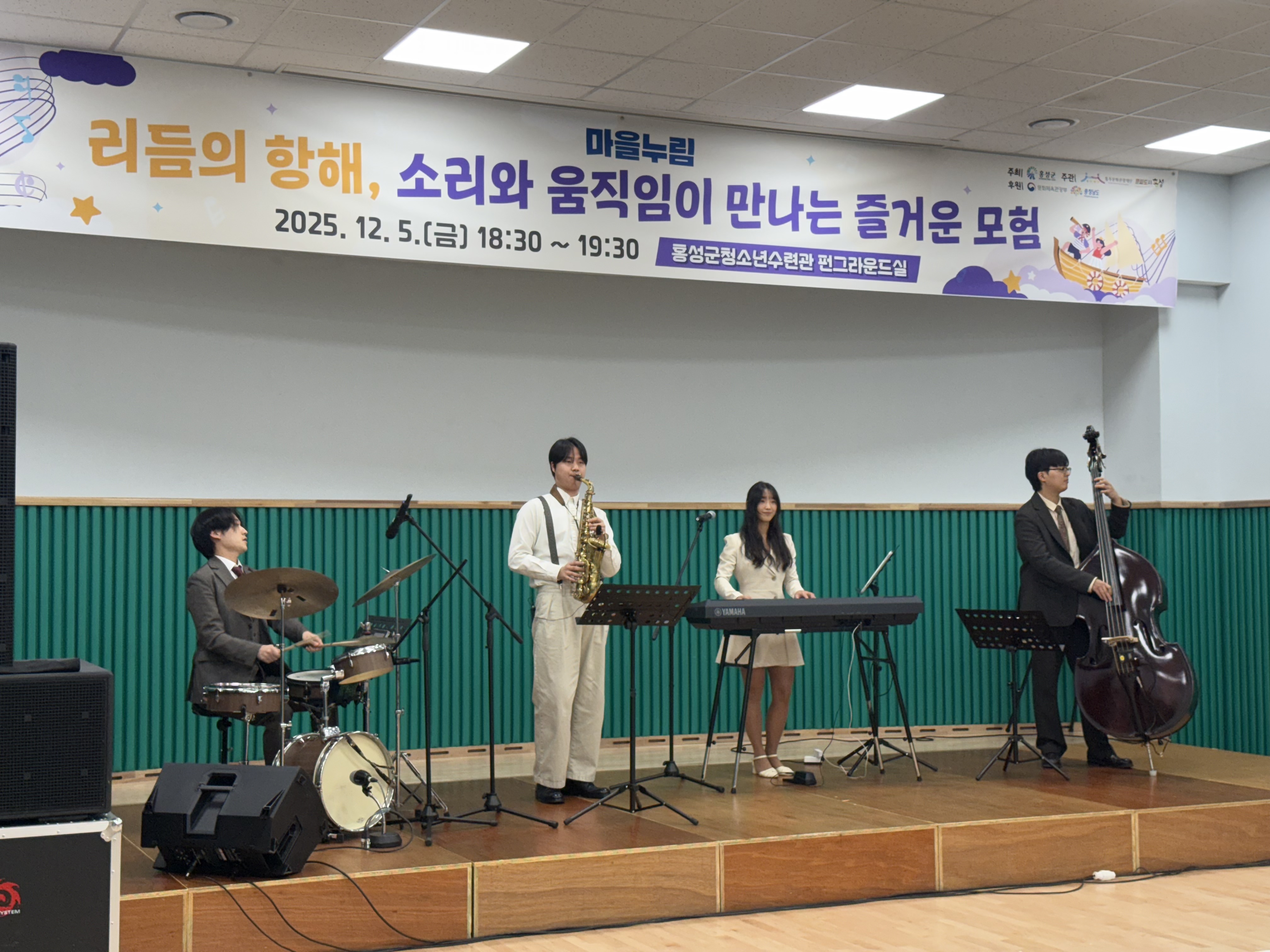 [마을누림] 리듬의 항해, 소리와 움직임이 만나는 즐거운 모험 | 홍성군청소년수련관 18시 30분 (12. 5.) | 디네트, 루나플로우, 매직저글링, 코지재즈오피스 | 문화도시 홍성 작성자 : 홍주문화관광재단 작성날짜 : 2025-12-10 조회수 : 40